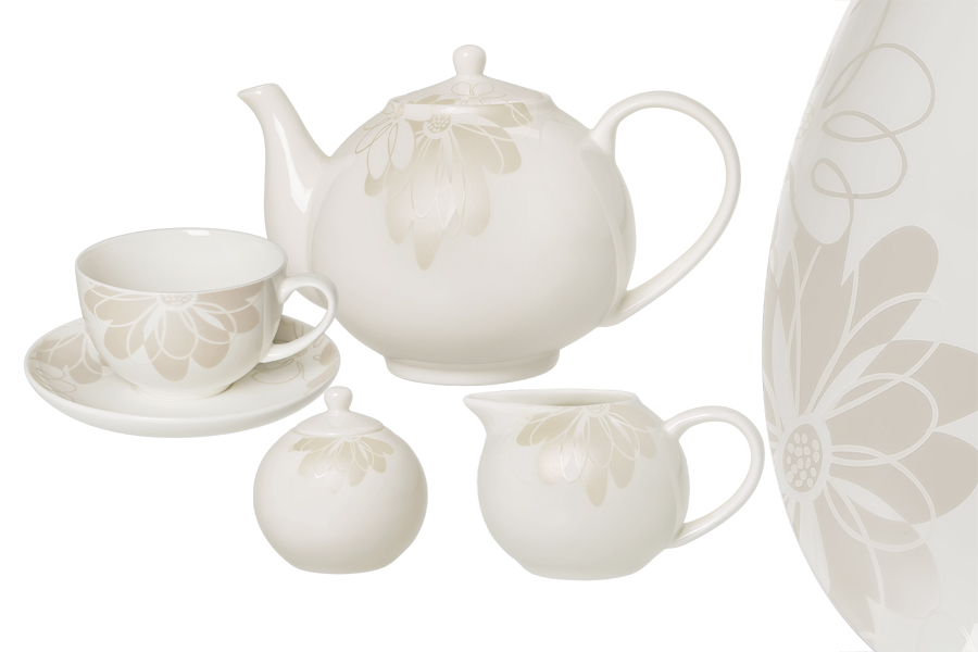 Чайный сервиз МАГНОЛИЯ рассчитан на 6 персон, в него входит 15 предметов: