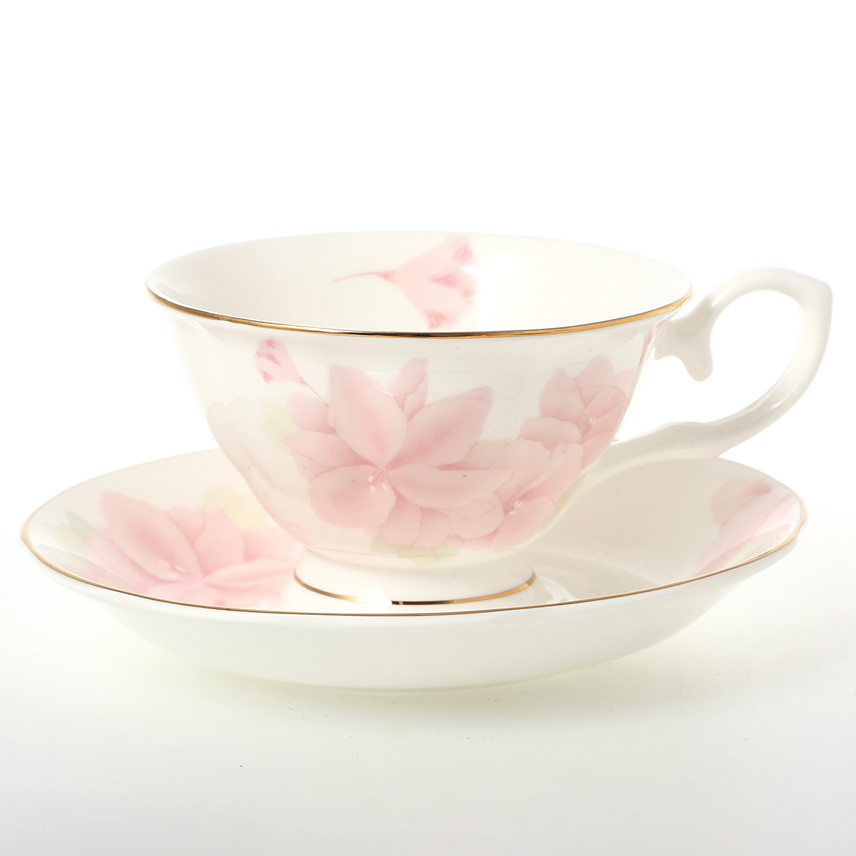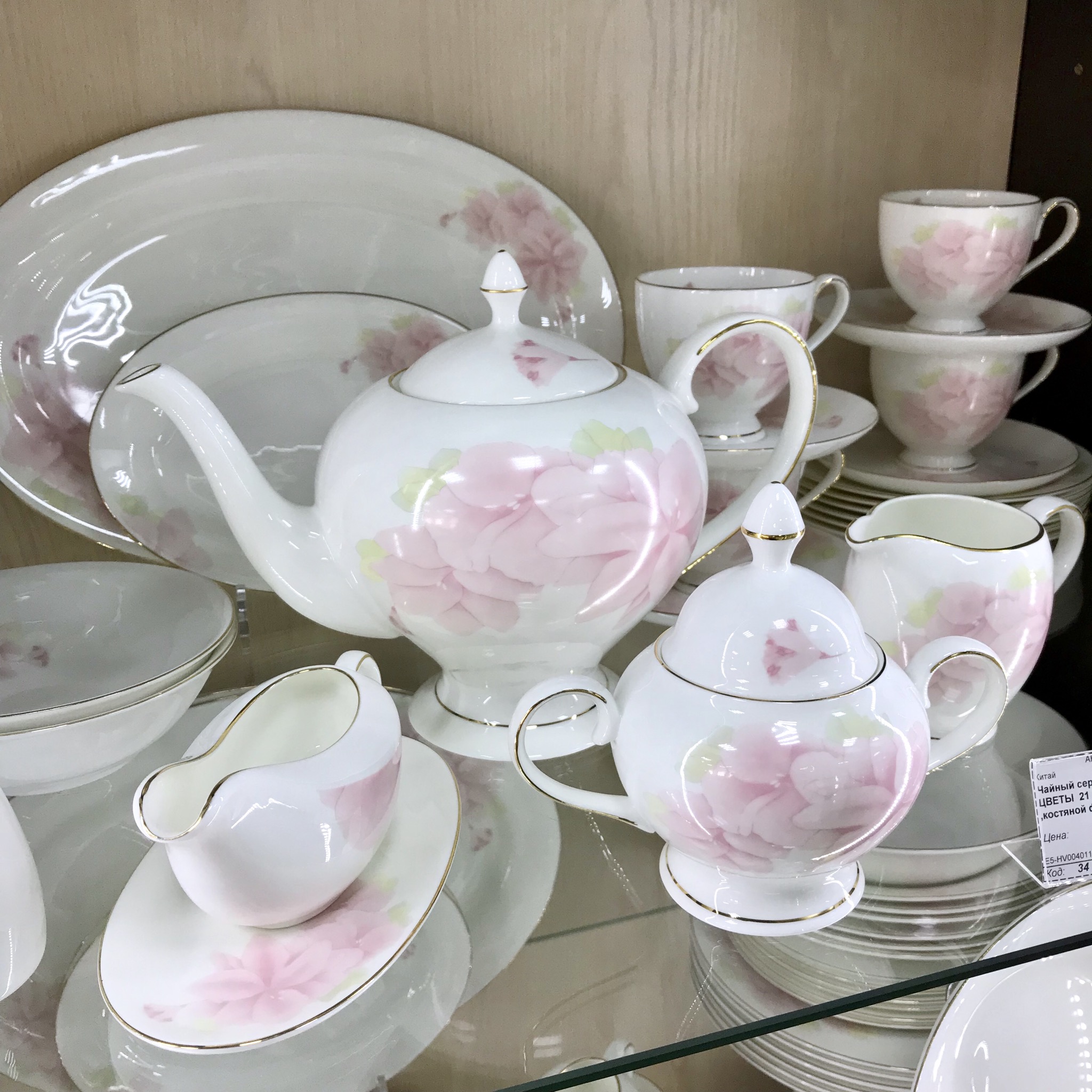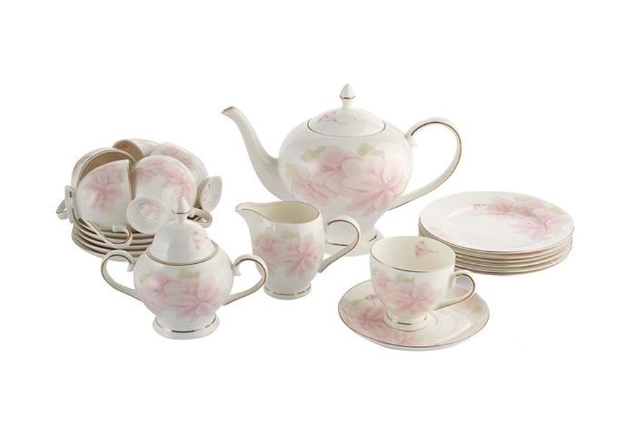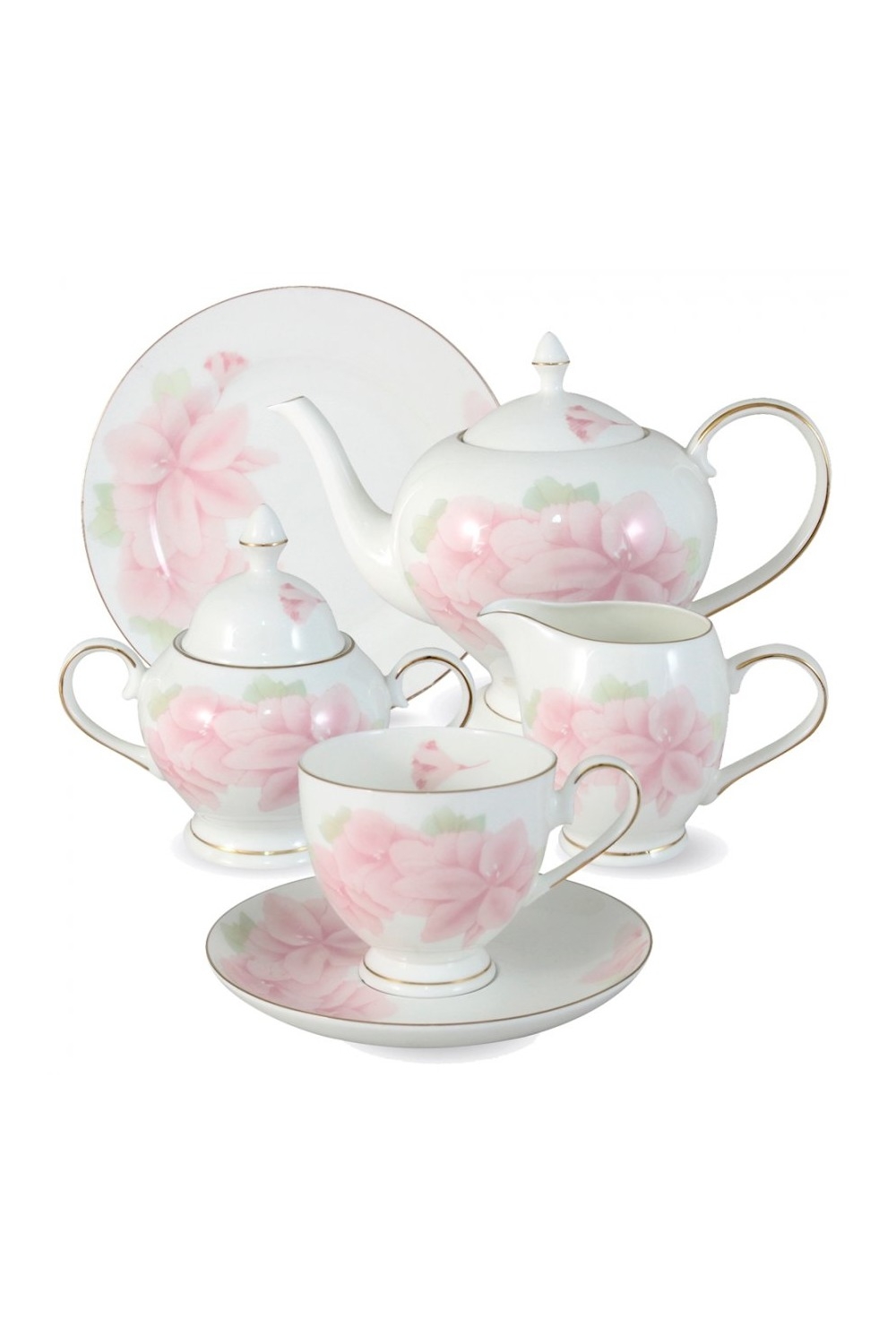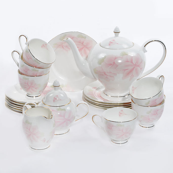 Чайный сервиз РОЗОВЫЕ ЦВЕТЫ 21 предмет на 6 персон, фарфор костяной