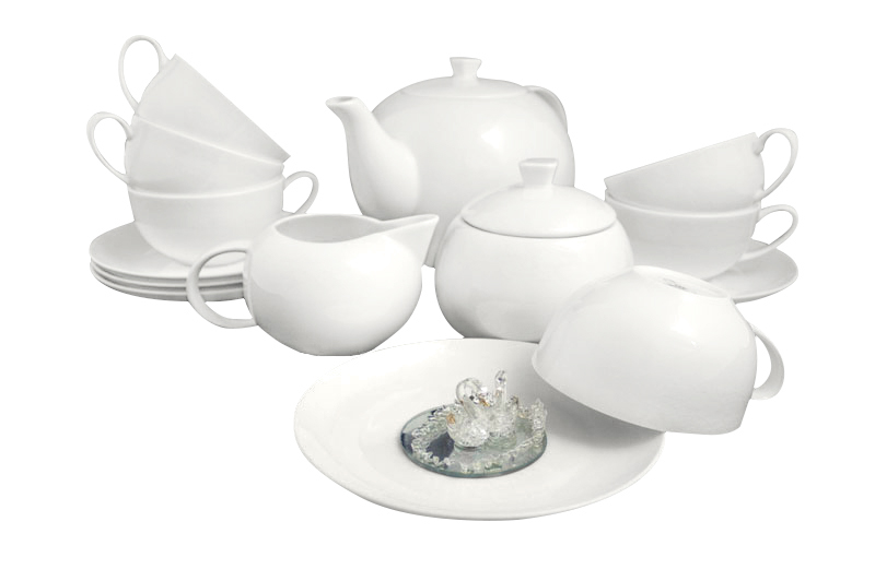 чайник 1,6л, молочник 300мл, сахарница 400мл, чашка 250мл-6шт, блюдца-6 шт.