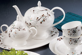 Комплектация: чашка 270мл-6шт, блюдце 15см-6шт, сахарница 370мл, молочник 300мл, чайник 1,1л.