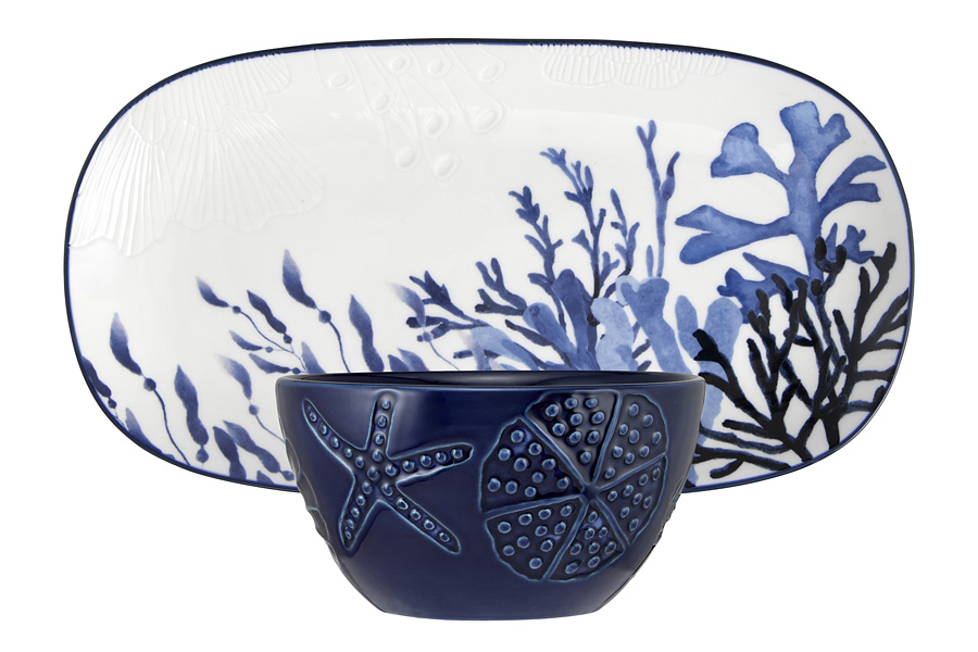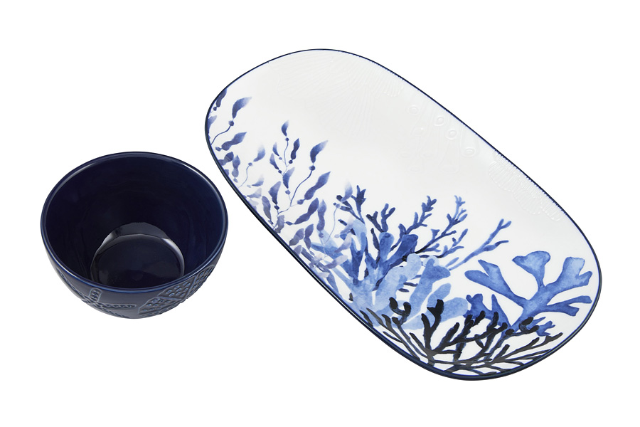 Набор 2пр. блюдо овальное 33*18см+салатник D=12см BLU CORAL, керамика каменная