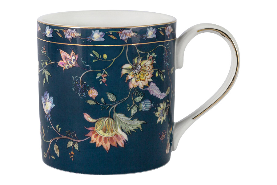 Кружка 350мл ФЛОРА синяя, фарфор, в подарочной упаковке