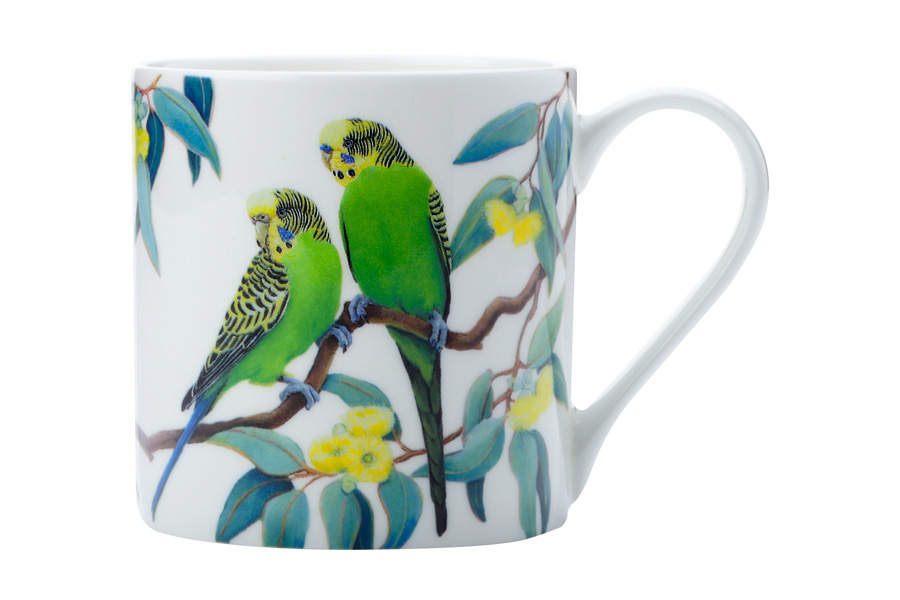 Кружка 350мл ВОЛНИСТЫЕ ПОПУГАИ в подарочной упаковке, фарфор костяной