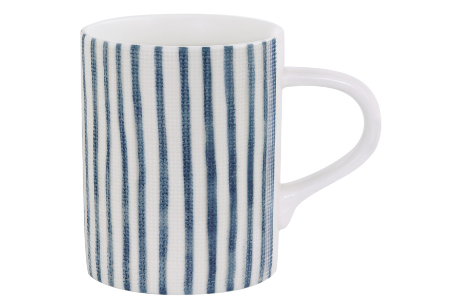 Кружка белая с синими полосками «Бриз» из фарфора.