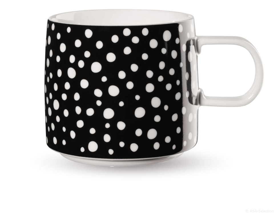 Кружка 400мл MUGA чёрная с белыми кругами, фарфор