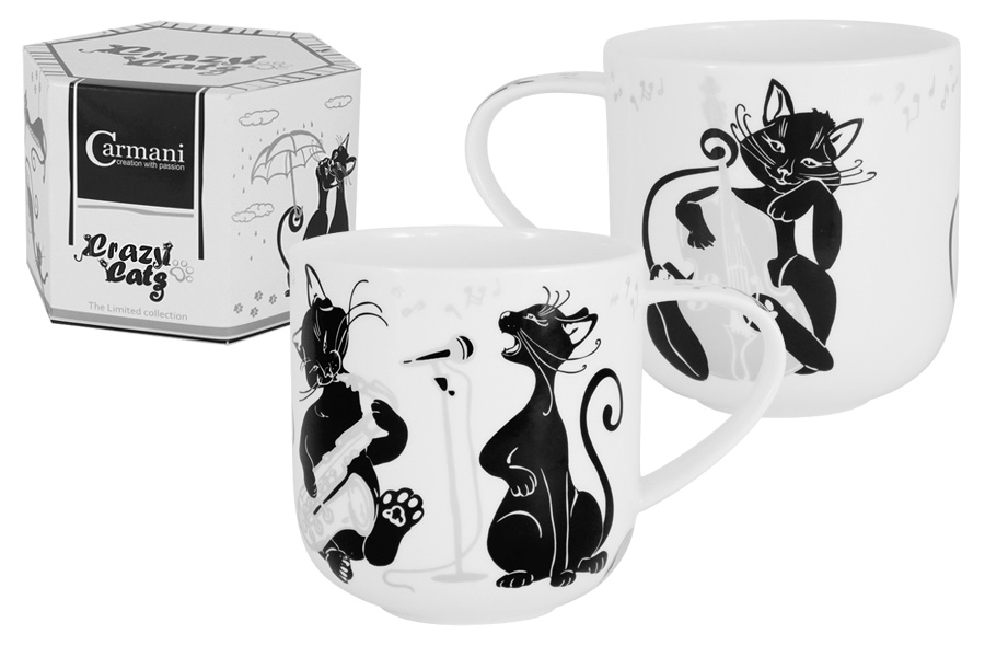 Кружка 500мл CRAZY CATS. Музыканты, фарфор костяной