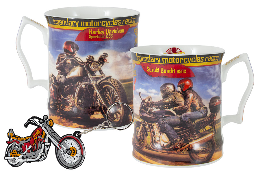 Кружка с брелоком 500мл МОТОЦИКЛ БАНДИТ 650S, фарфор костяной