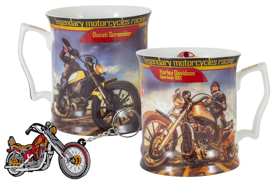 Кружка с брелоком 500мл МОТОЦИКЛ ХАРЛЕЙ-ДЭВИДСОН СПОРТСТЕР 883, девушка, фарфор костяной