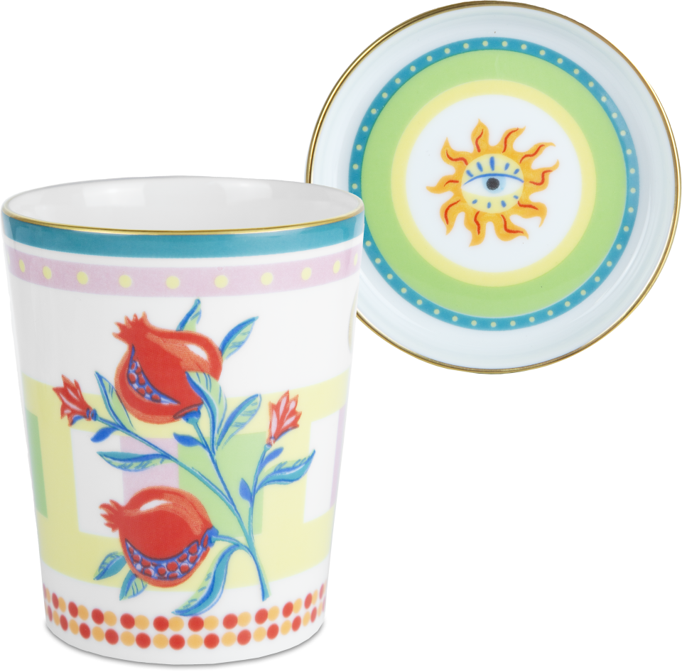 Кружка с крышкой D=9см H=12см MAMMA MIA с гранатом, фарфор