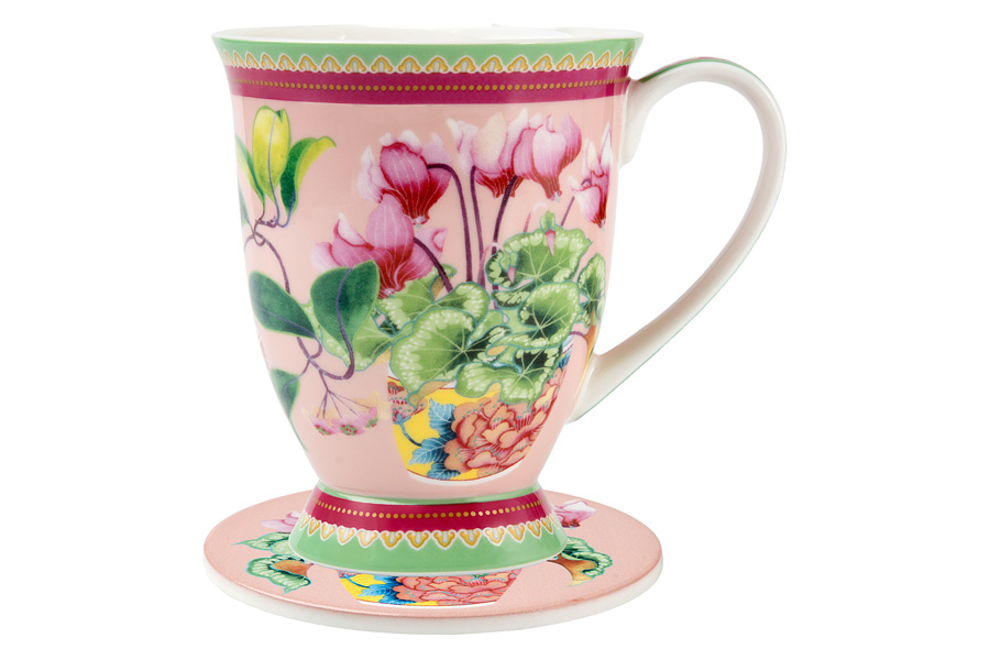 Кружка с подставкой 300мл ЦИКЛАМЕН, фарфор