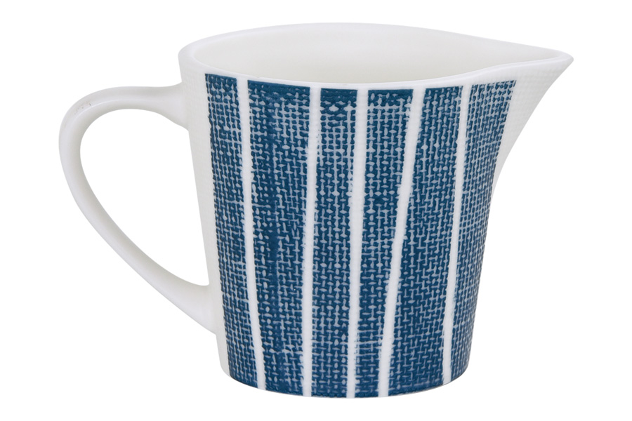 Молочник синий с белыми полосками «Бриз» из фарфора.