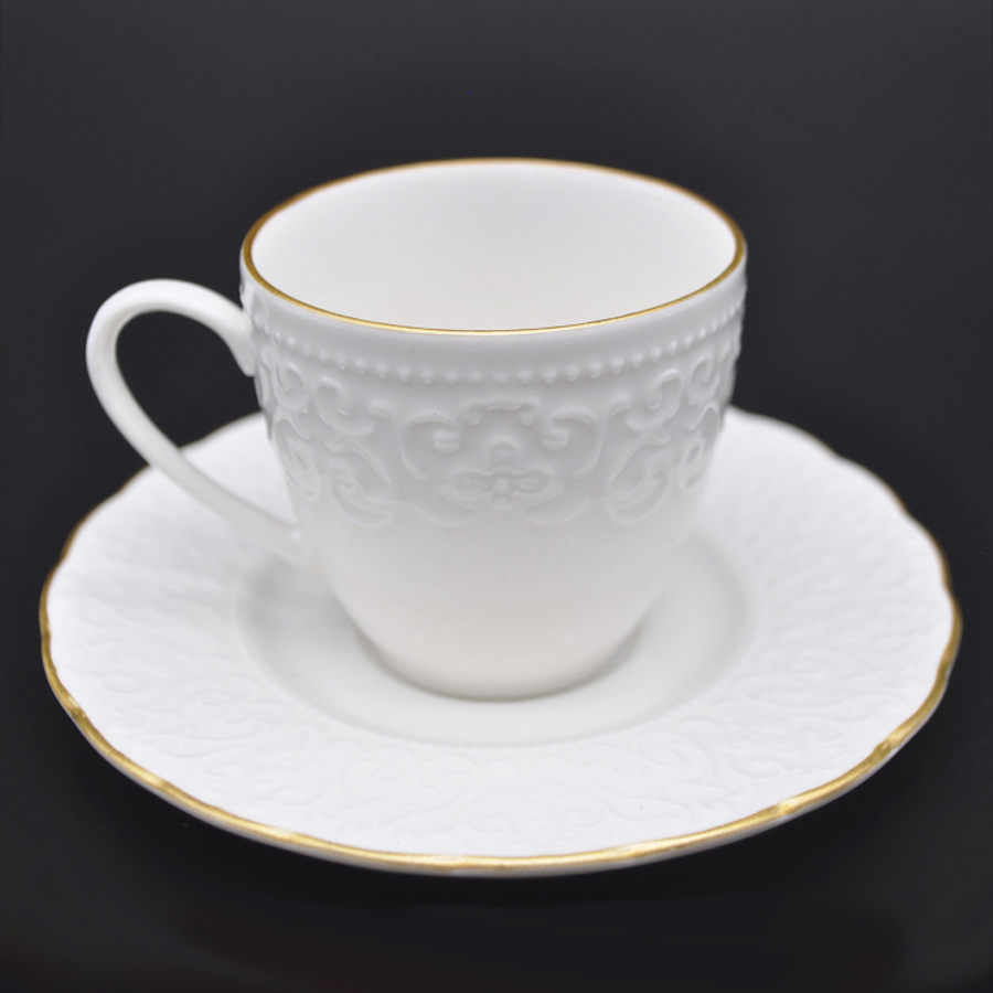 Чашка с блюдцем кофейная 100мл, IREM Отводка золото, фарфор костяной