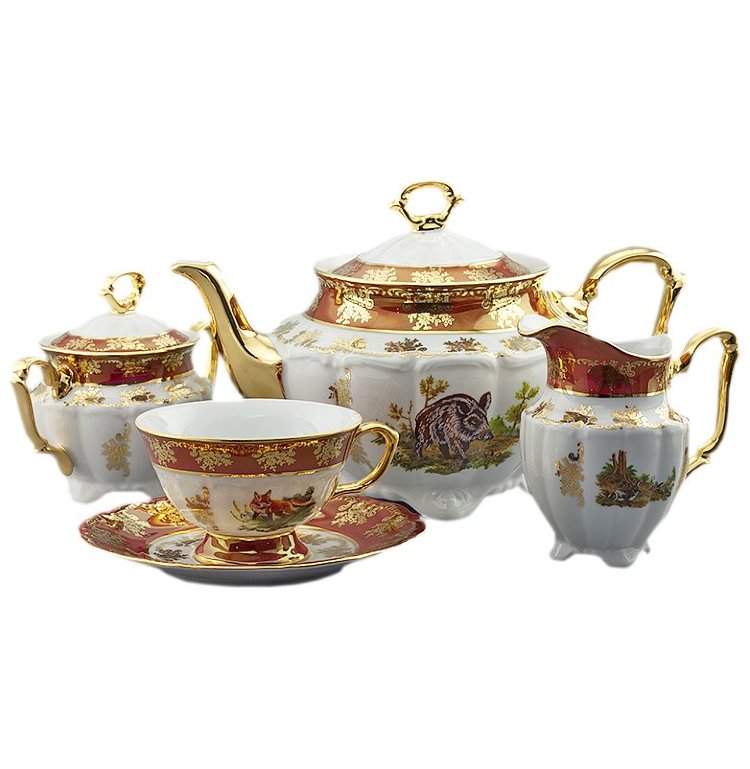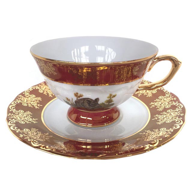 Чайная пара 220мл МАРИЯ ТЕРЕЗА ОХОТА КРАСНАЯ, фарфор
