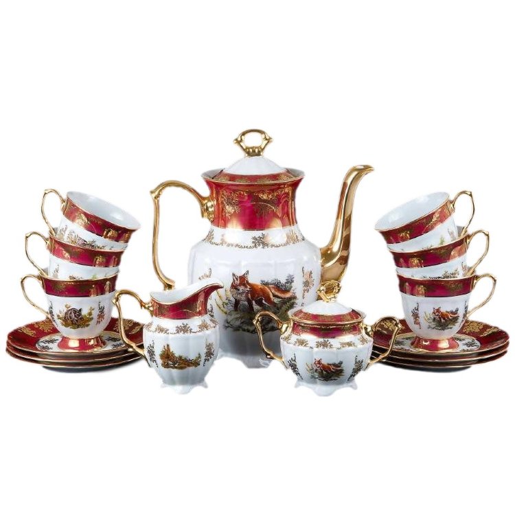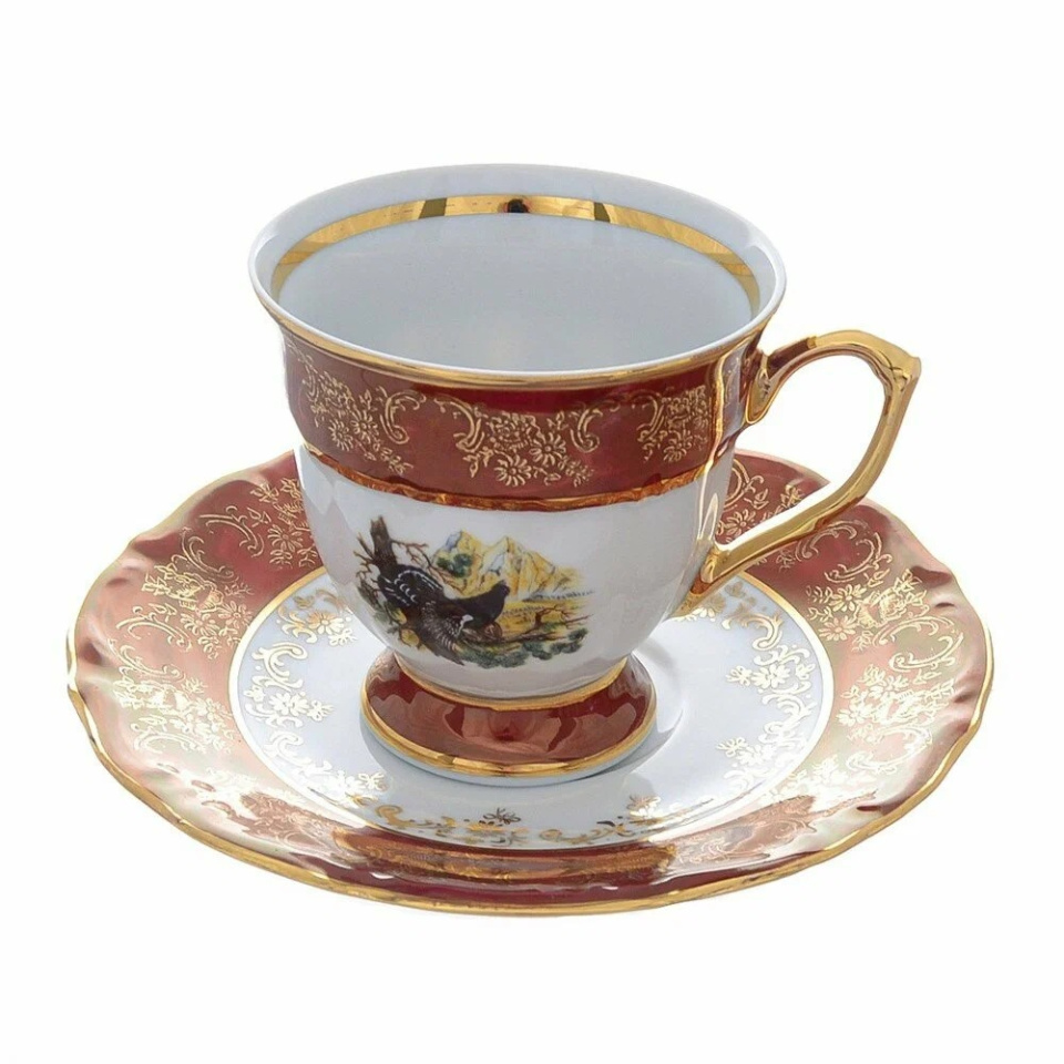 Кофейная пара МАРИЯ ТЕРЕЗА ОХОТА КРАСНАЯ, фарфор