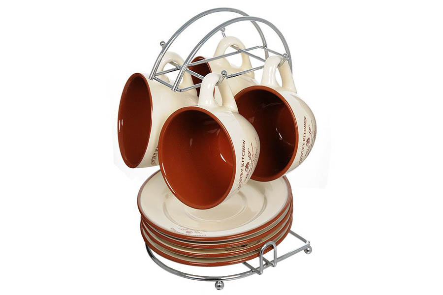 Набор:4чашки(0,2л)+4блюдца на металлической подставке КУХНЯ В СТИЛЕ КАНТРИ,керамика