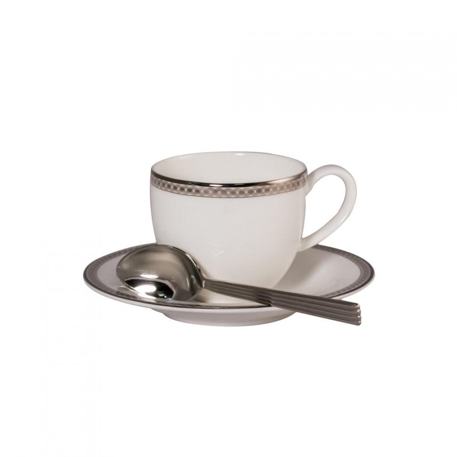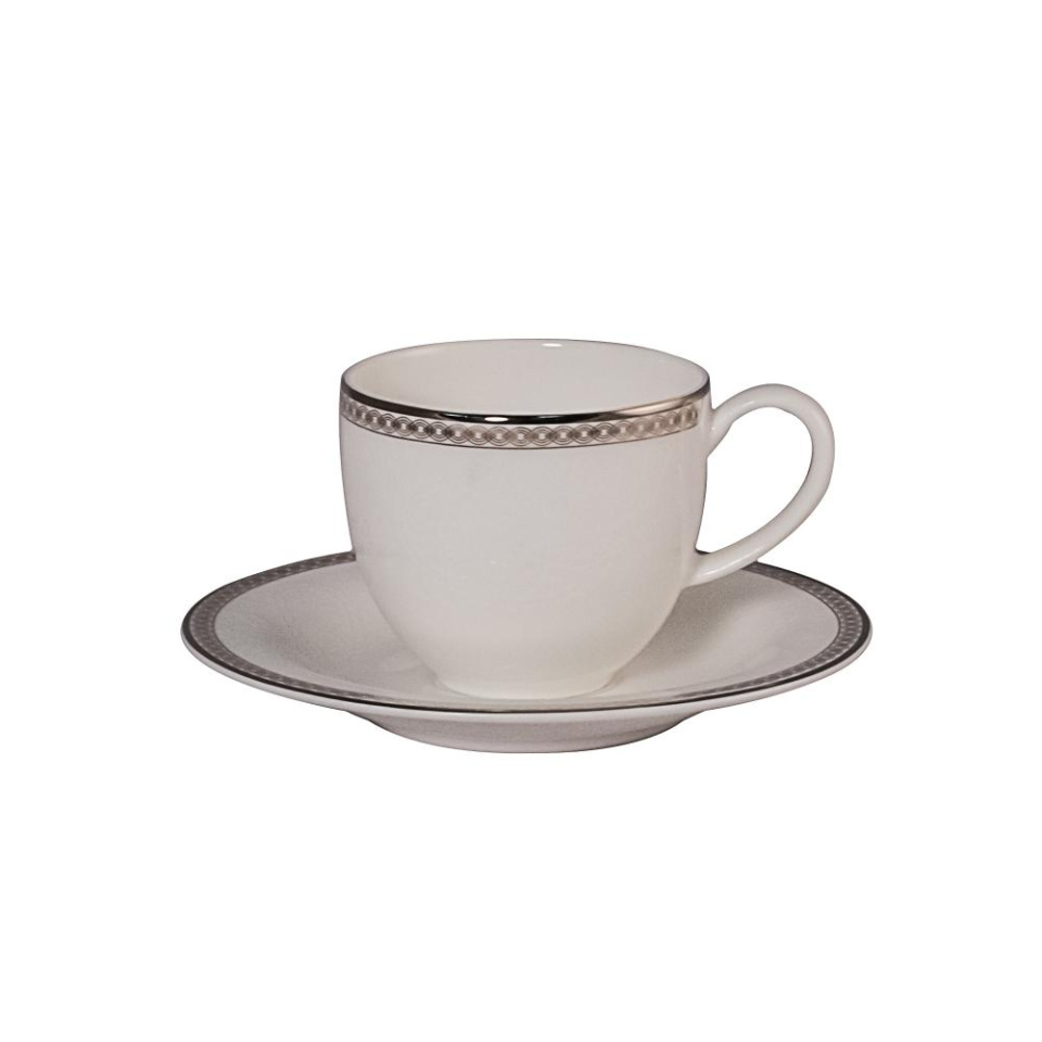 Набор 6шт кофейная пара 100мл СЕРЕБРЯНАЯ ВЫШИВКА, фарфор
