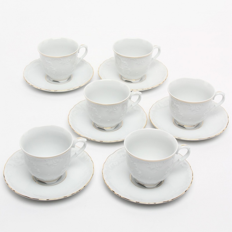 Набор чайных пар 6шт 250мл ROCOCO отводка золотом, фарфор