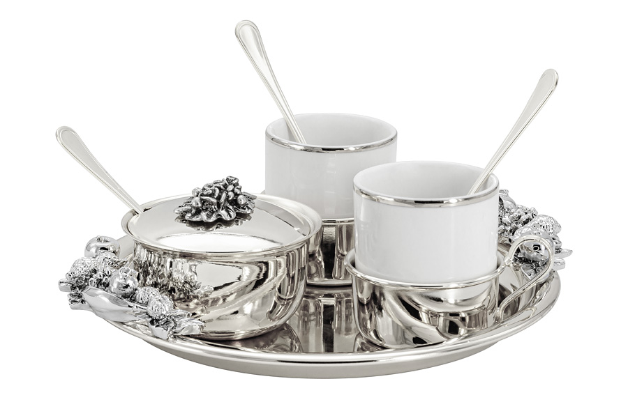 Комплектация: чашка в подстаканнике – 2шт., ложка чайная – 2шт., сахарница с ложкой, поднос.