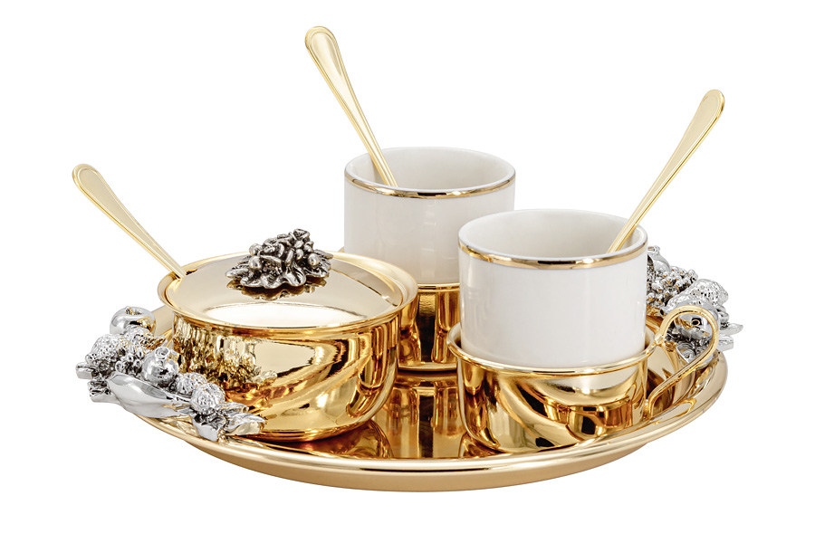 Комплектация: чашка в подстаканнике – 2шт., ложка чайная – 2шт., сахарница с ложкой, поднос.