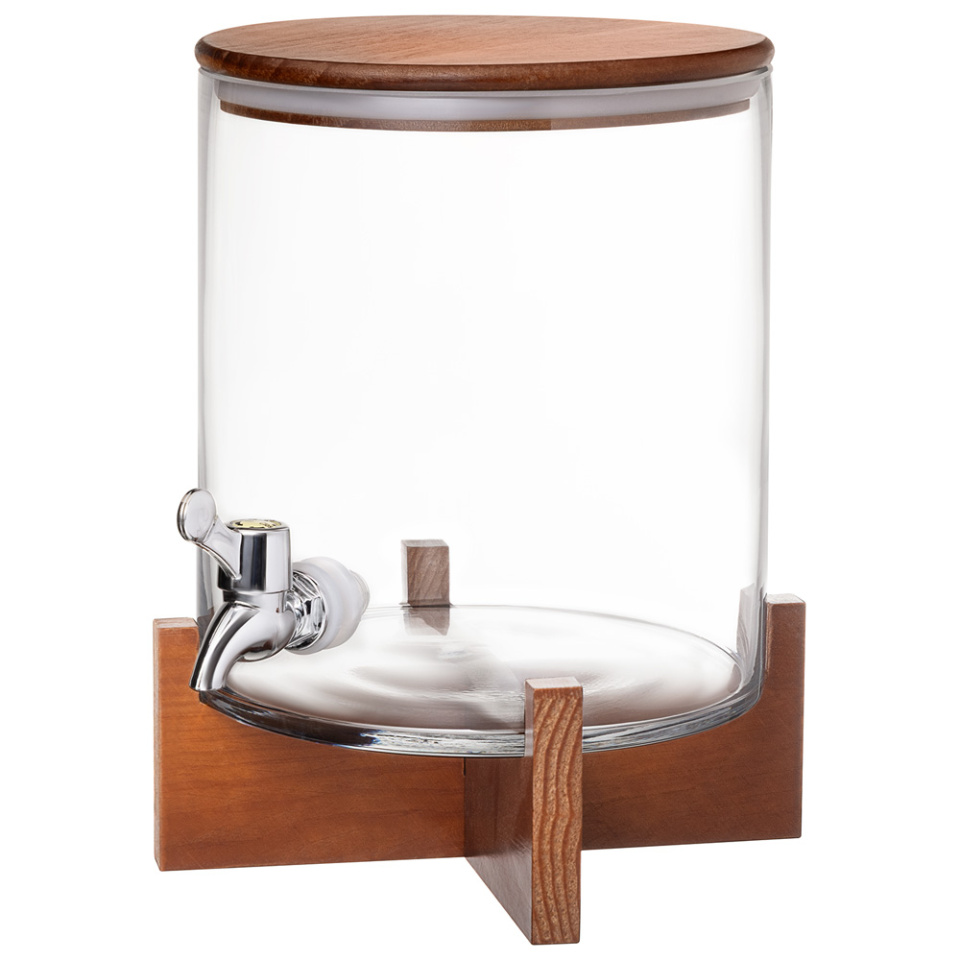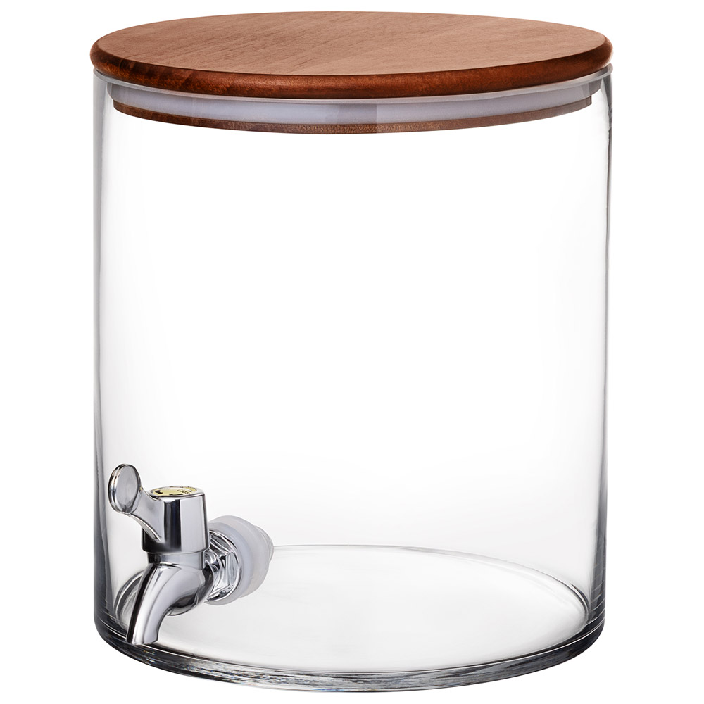 Лимонадник выполнен из прочного стекла, оснащён краном для выливания жидкости, благодаря чему станет идеальным вариантом для хранения и подачи освежающих лимонадов, ароматных свежевыжатых соков и других напитков. Его изысканная рифлёная поверхность и прочная деревянная основа из акации делают каждую подачу напитков особенной.