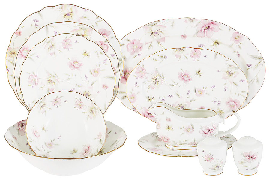 Сервиз обеденный 6/27 РОЗОВЫЙ ТАНЕЦ, фарфор костяной