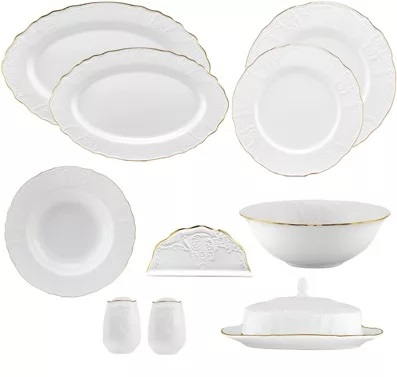 Коллекция MARIA GOLD выполнена в стиле барокко и производится из тонкого белого фарфора c золотой каймой. Изделия украшены рельефным декором, изящно подчеркивающими благородство фарфора, узорные края выглядят элегантно и всегда в тренде посудной моды.