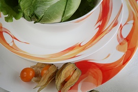 Красно-желтые языки пламени смотрятся невероятно эффектно и стильно на белоснежной глади посуды серии Фиеста. Все предметы изготовлены из прочного костяного фарфора и характеризуются превосходными эксплуатационными свойствами.