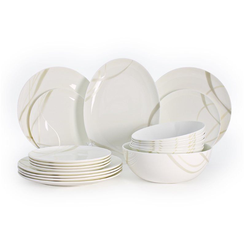 Комплектация: блюдо 31,5см, салатник 2л, тарелка для супа -6 шт, тарелка закусочная 20,7см- 6 шт, подтарельник 27см- 6 шт.