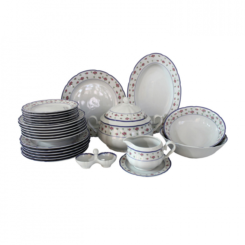 Сервиз столовый РОЗА декор Мелкие цветы, синяя отводка рассчитан на 6 персон, в него входит 27 предметов: