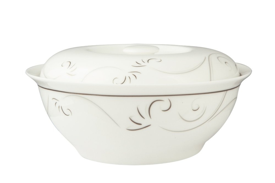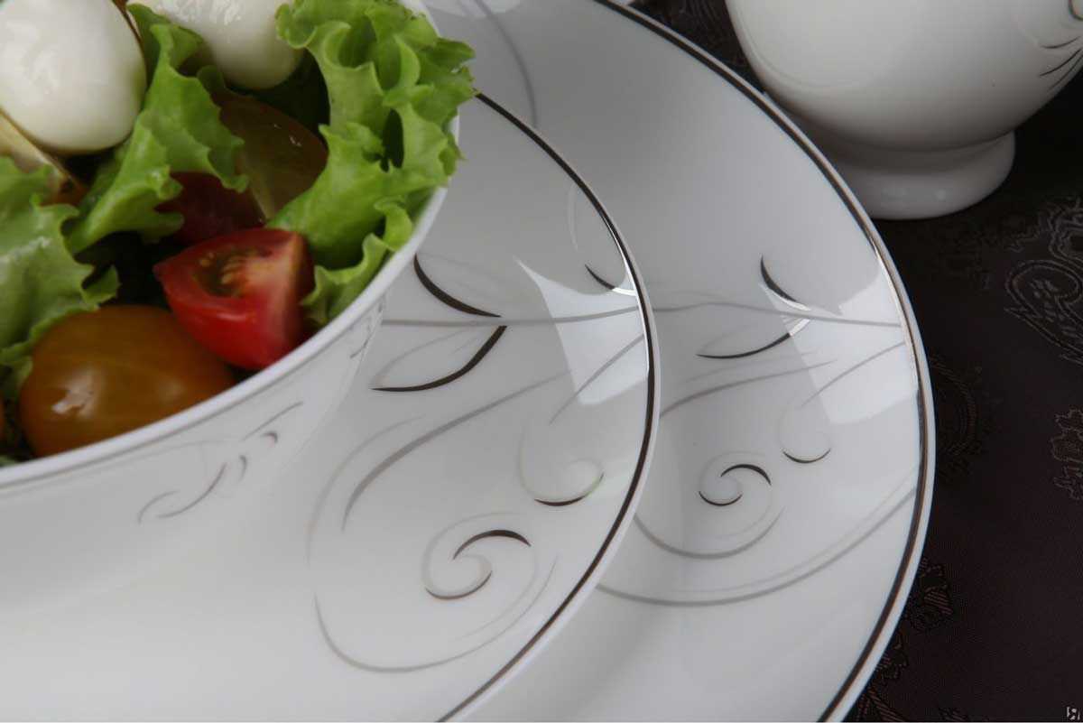 Утонченная красота белоснежной посуды из серии "Лоза" от Royal Aurel с первого взгляда привлекает внимание. Классические формы этой посуды идеально гармонируют с белизной и изяществом тонкого костяного фарфора, из которого она изготовлена. Особым изяществом и прелестью отличается декор коллекции – лаконичный узор, напоминающий изгибы нежной виноградной лозы, выполненный в нескольких тонах серо-стальной гаммы. Завершает изящное оформление тонкая окантовка, контрастно выделяющаяся на глянцевом фарфоре. Хрупкая на вид посуда хорошо выдерживает мытье в посудомоечной машине (но только на деликатном режиме, без абразивных средств и при низкой температуре), поэтому она подходит не только для оформления праздничного стола, но и для сервировки обеда или ужина в семейном кругу.