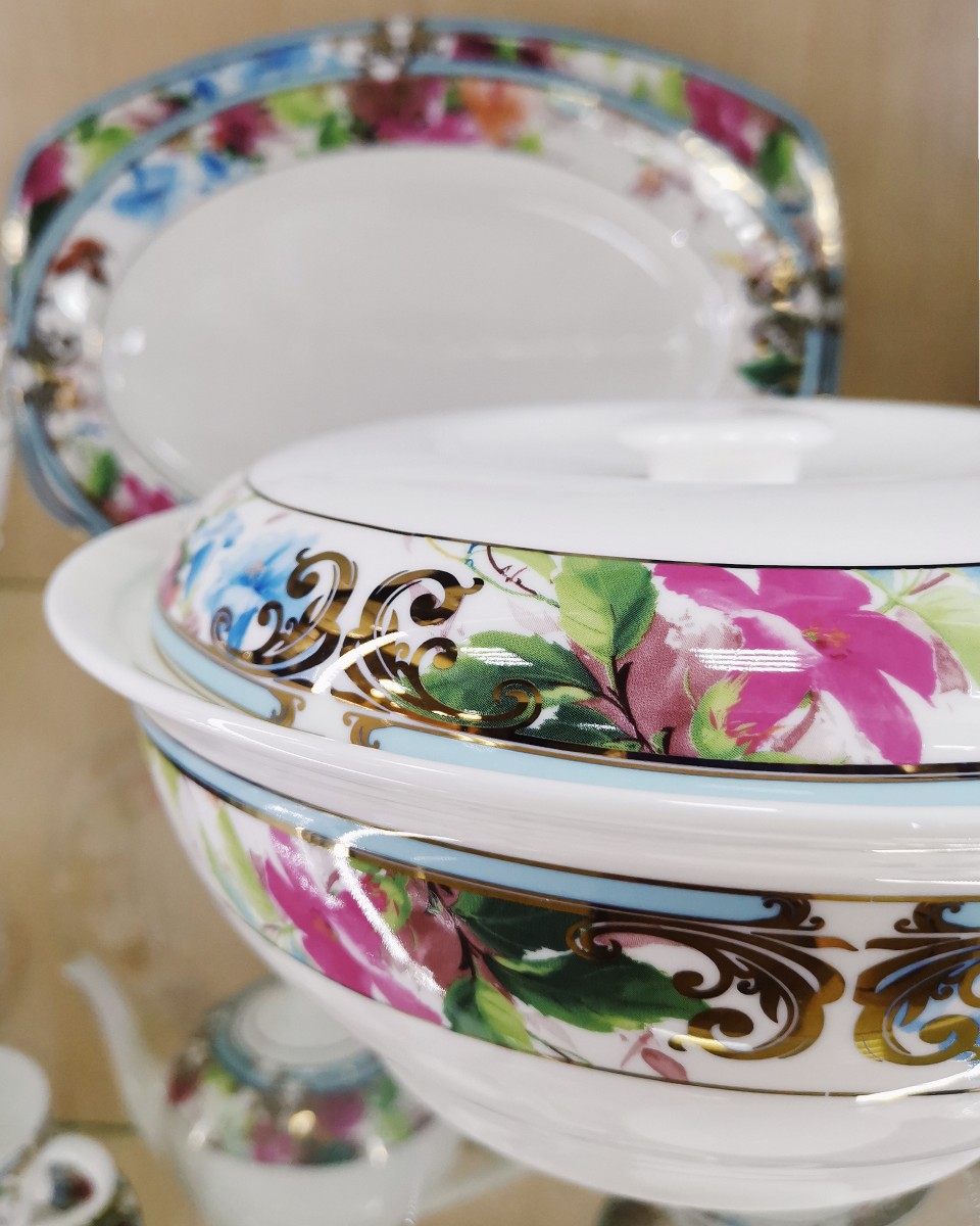 Столовый сервиз ЦВЕТУЩИЙ САД 29пред/6пер, фарфор костяной