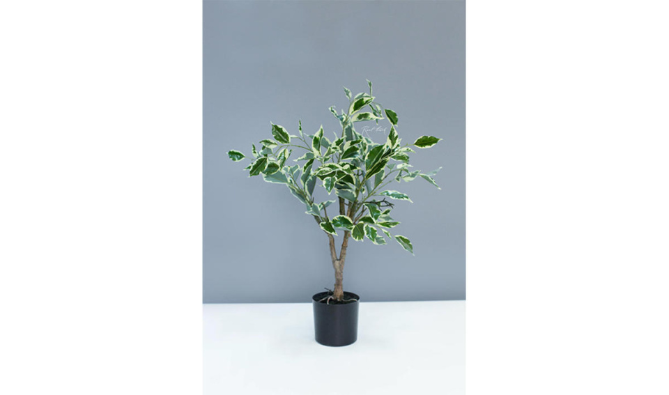 Фикус в горшке Бенджамина пестрый 64см, бело-зеленый, силикон