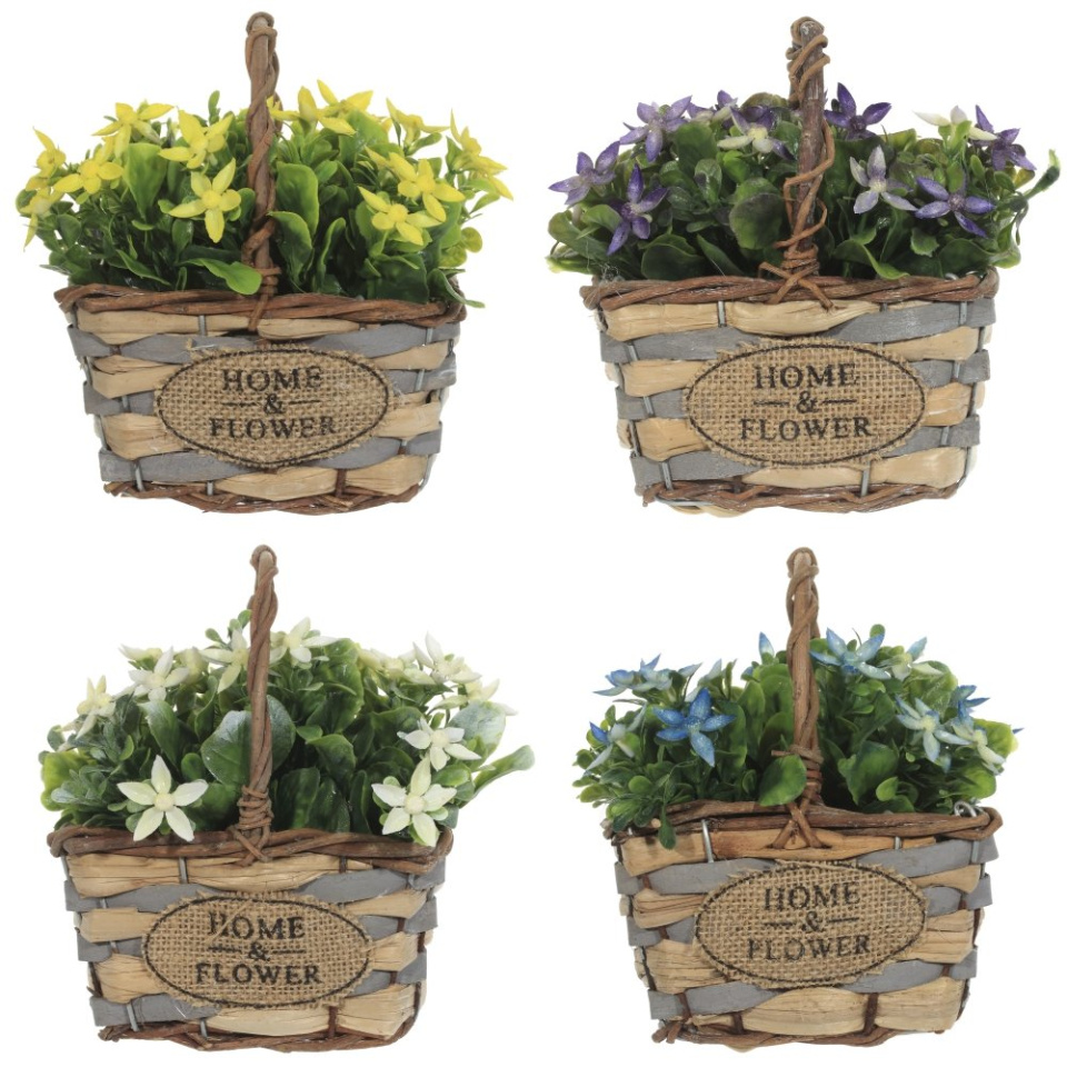Цветочная композиция, изготовлена из полимерных материалов, дерева. Размер: L13 W9 H16 см. Представлено в четырех вариантах. Упаковка-подарочная коробка.