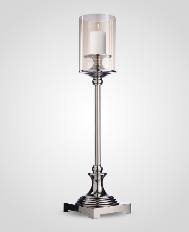 Подсвечник 59см серебристый, со стеклянной колбой, металл, стекло