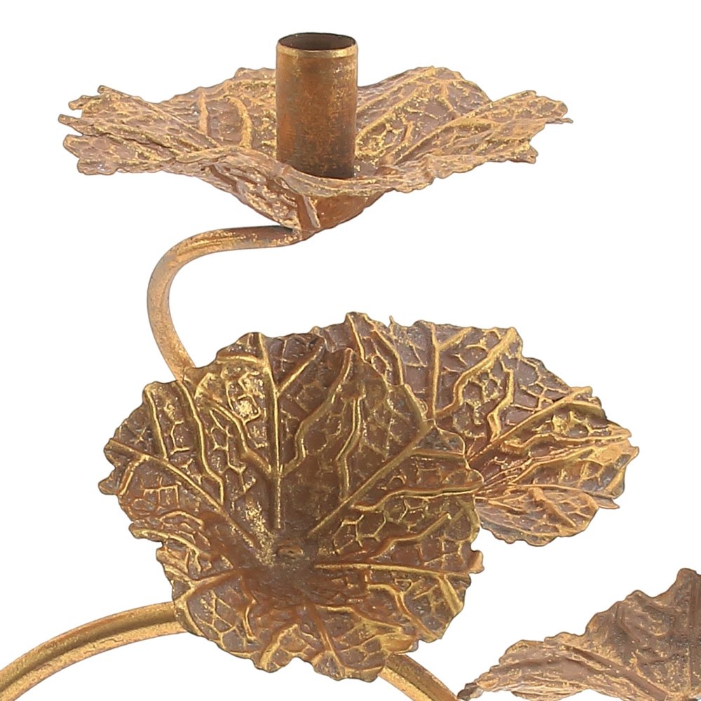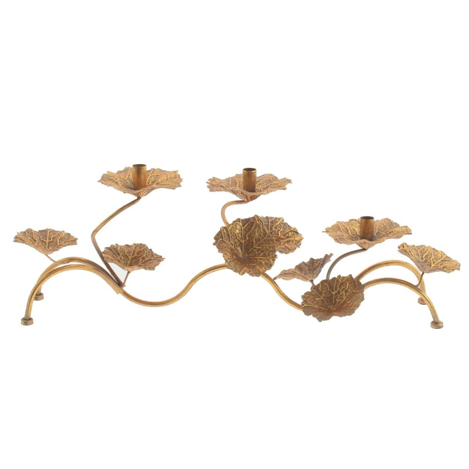 Подсвечник на 3 свечи ЛИСТЬЯ, золотой, 79х25х26см, металл