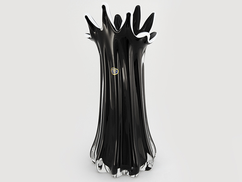 Ваза для цветов 38см черная с белым кантом, хрусталь