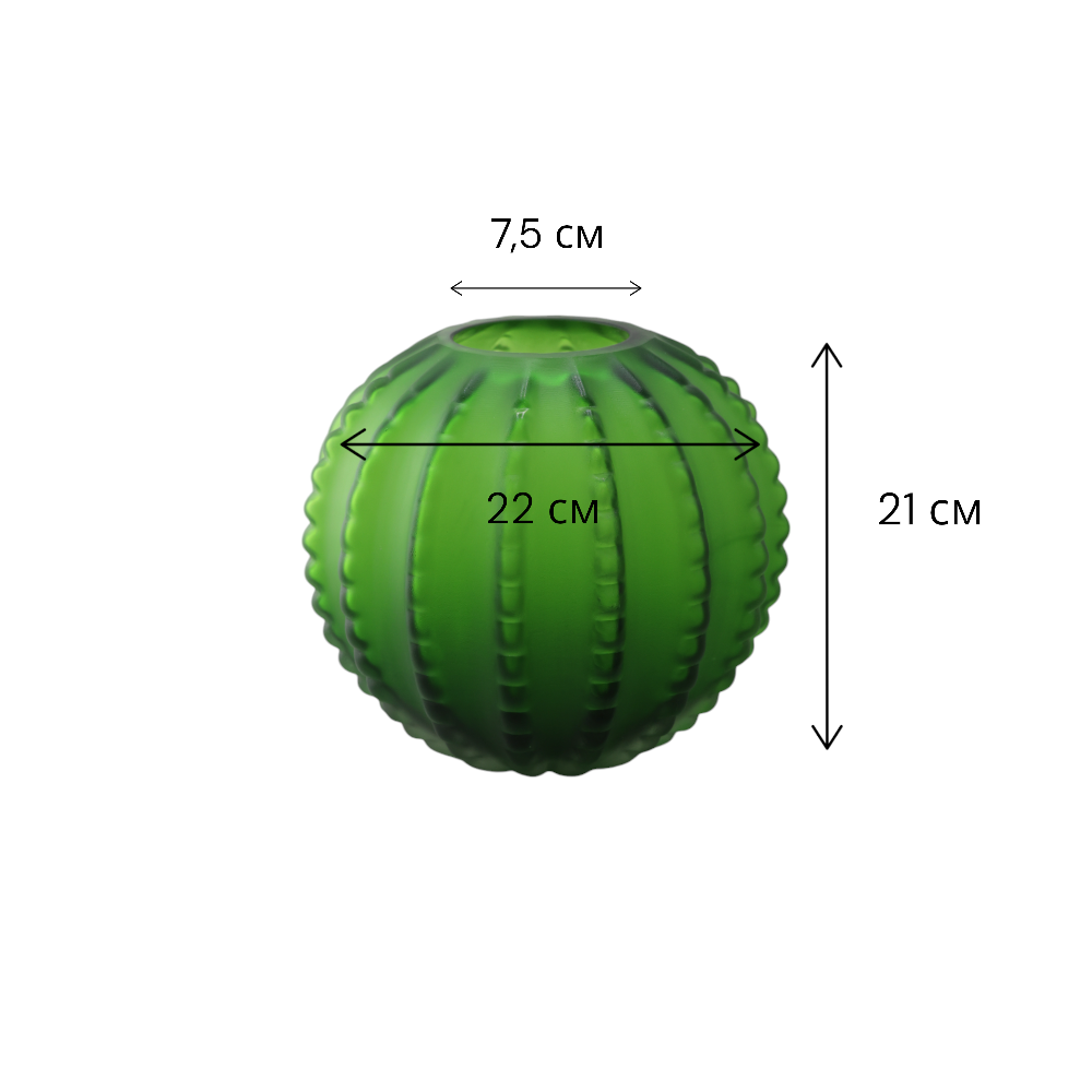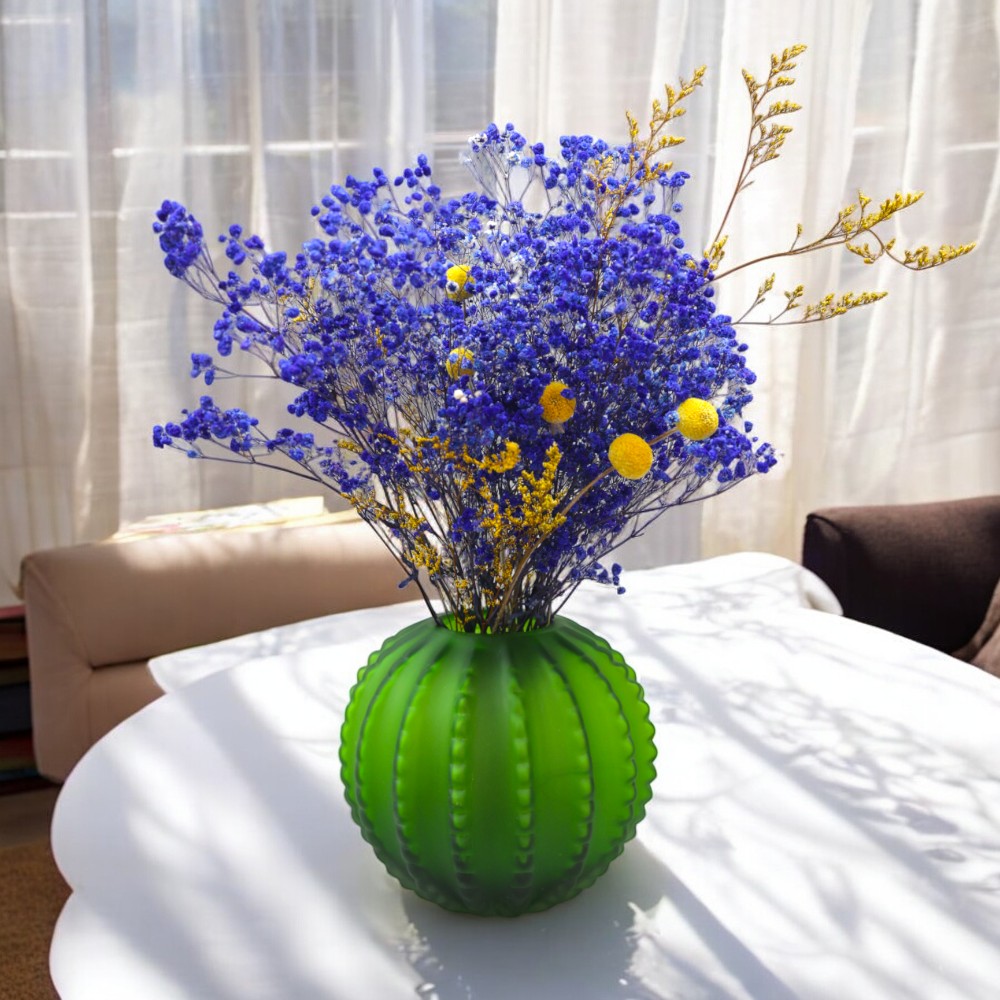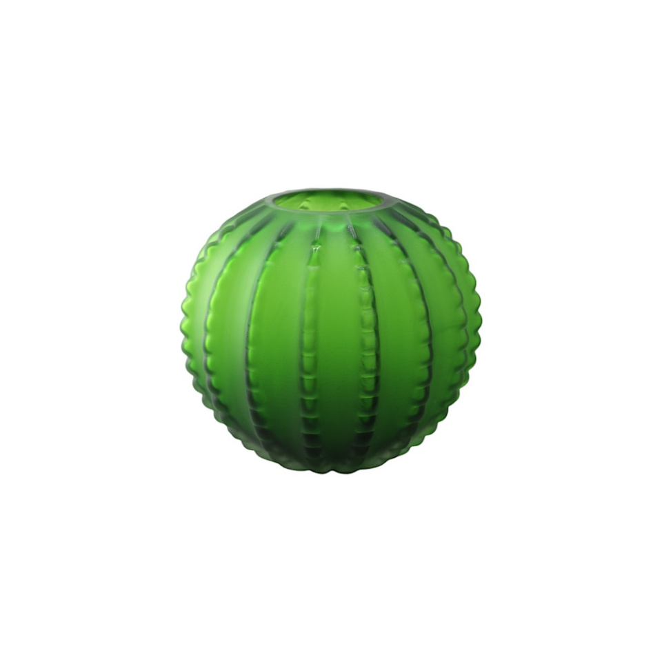 Ваза своим дизайном, выполненным в ярко-зеленом цветном стекле, напоминает кактус. Её можно использовать для хранения симпатичного цветочного букета или в качестве украшения интерьера
