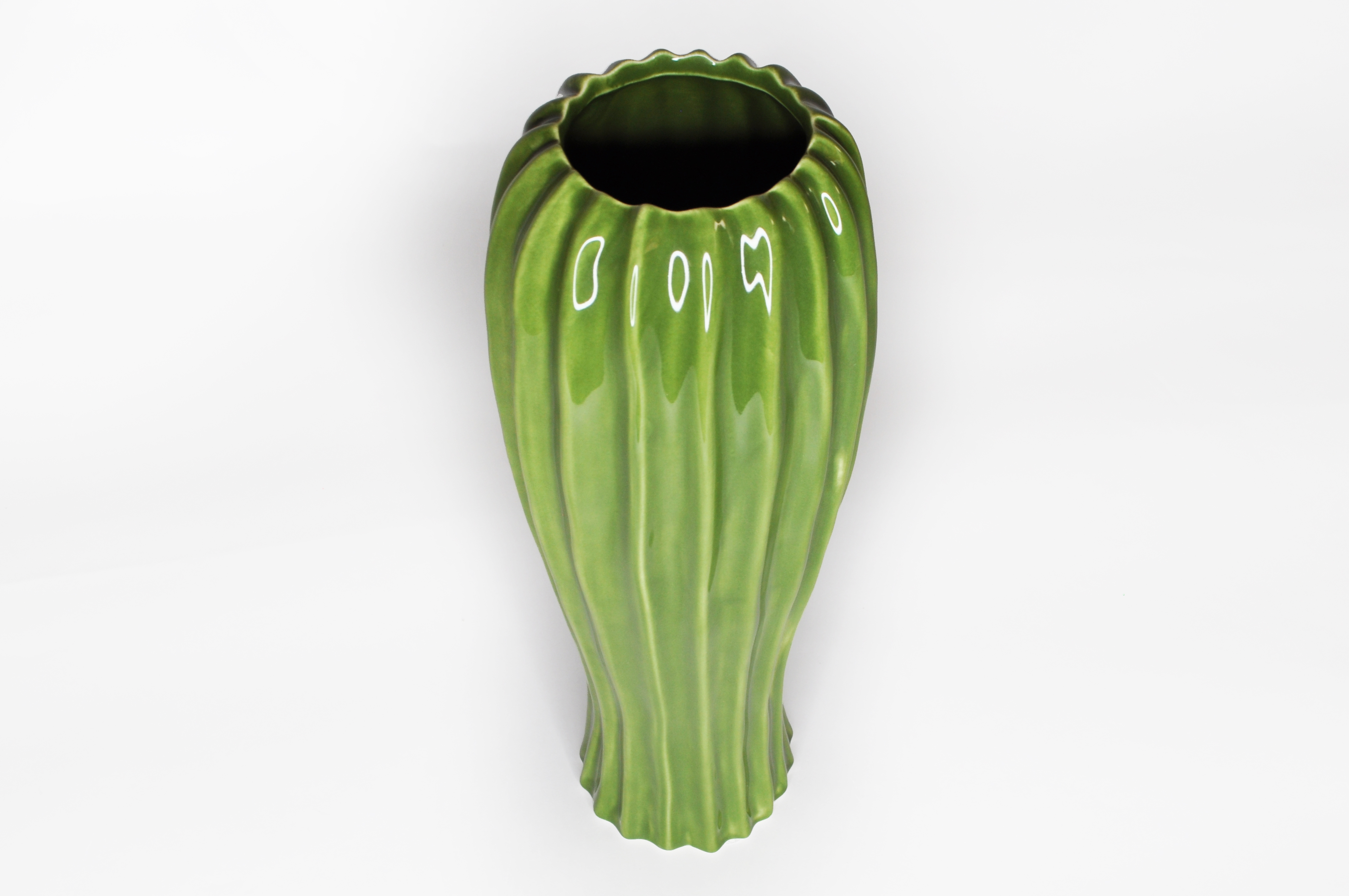 Ваза рельефная 11.5xH31.5см, темно-зеленая, керамика