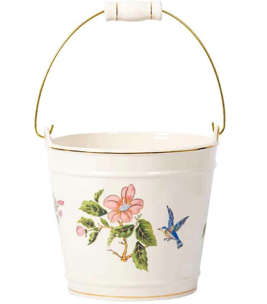 Ведро декоративное для цветов H=22,5см ПТИЦЫ белое, керамика