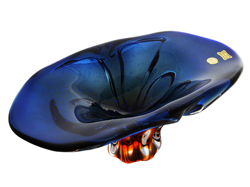Яркий чешский салатник "Фэнтези Закат золотой" 35 см изготовлен из цветного гутинского стекла. Необыкновенный, притягивающий взгляд формой и сочетанием сочных цветов. Глубокий насыщенный синий и медовый амбер с золотом, плавные изгибы линий, сочетаясь, создают неповторимый и стильный предмет для декора интерьера.