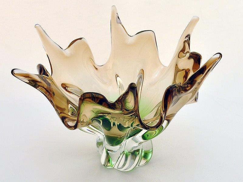 Интересная конфетница "Фэнтези бежевая" на невысокой устойчивой ножке сделана из гутинского стекла. Цвет вазочки меняется от основания кверху от прозрачного и зеленоватого к бежевому и коричневому. Нежные пастельные тона подойдут практически к любому интерьеру. Небольшая вазочка с плавными хаотичными краями может использоваться как фруктовница, салатник или конфетница.
