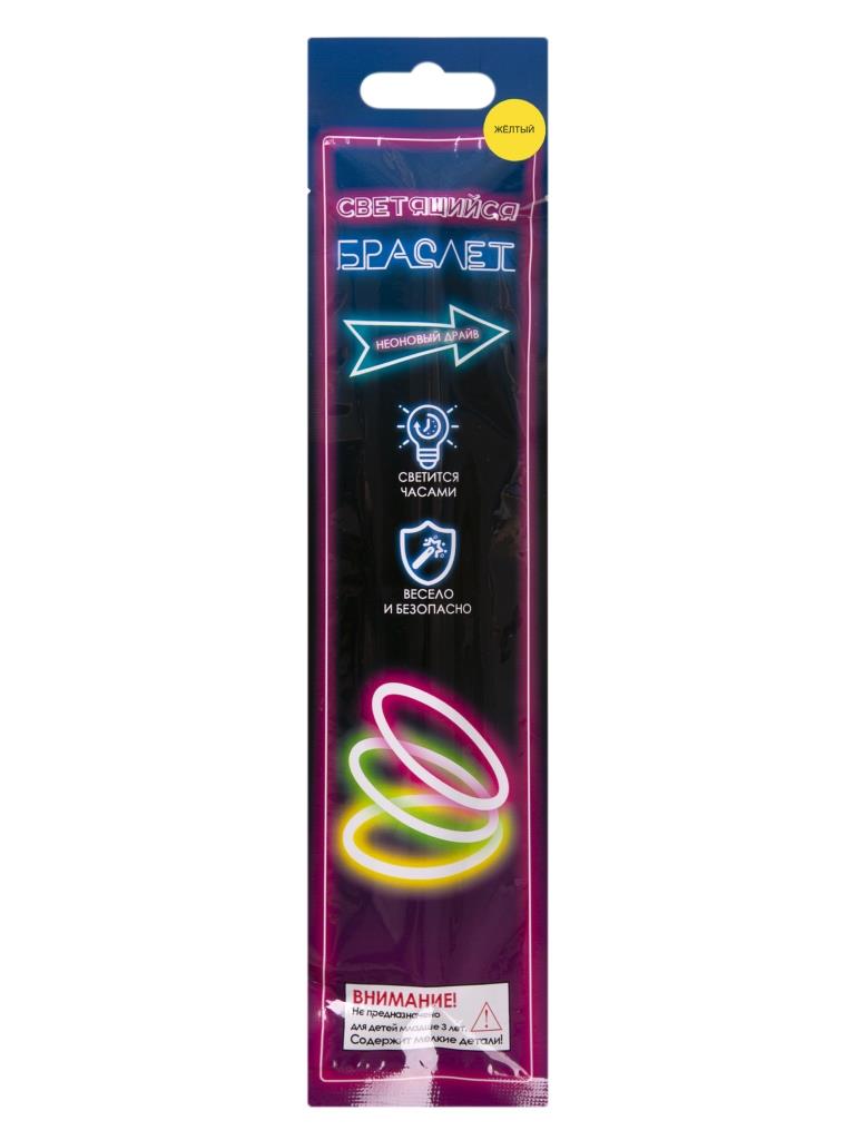 Набор 3шт браслет светящийся, одинарный ЖЕЛТЫЙ 7x7x0.5см, полипропилен, люмисцентная жидкость