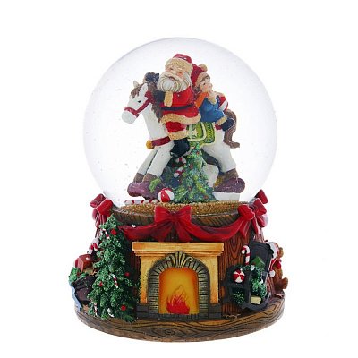 Фигурка декоративная с музыкой в стеклянном шаре, диаметр - 10 см. Шар заполнен водой с глиттером, имитурующем снег при встряхивании, фигурка и подставка изготовлены из полистоуна. Размер: 12х11,5х15,5 см. Упаковка - коробка. Внимание: при длительном нахождении в минусовой температуре возможно образование льда, который сместит фигурки и повредит шар.