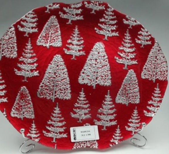 Тарелка D=32см МЕТЕЛИЦА красная, стекло