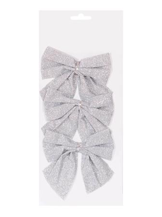 Набор 3шт украшение новогоднее БАНТ Серебро металлик 10,5*11,5*0,1см, полиэстер
