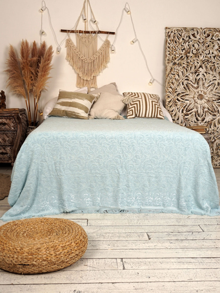 Покрывало 200*220см CAMELLIA голубое махровое, хлопок