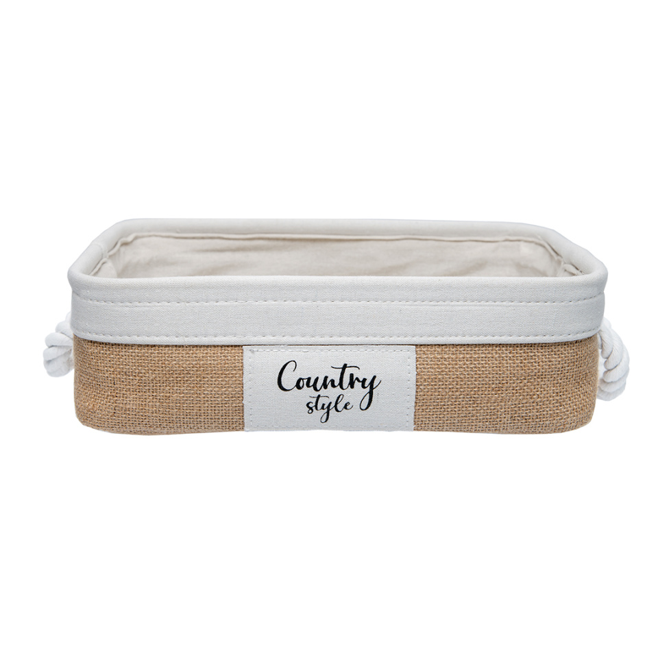 Корзина для белья стеллажная с ручками бежевая КАНТРИ, 32*23*10см, джут