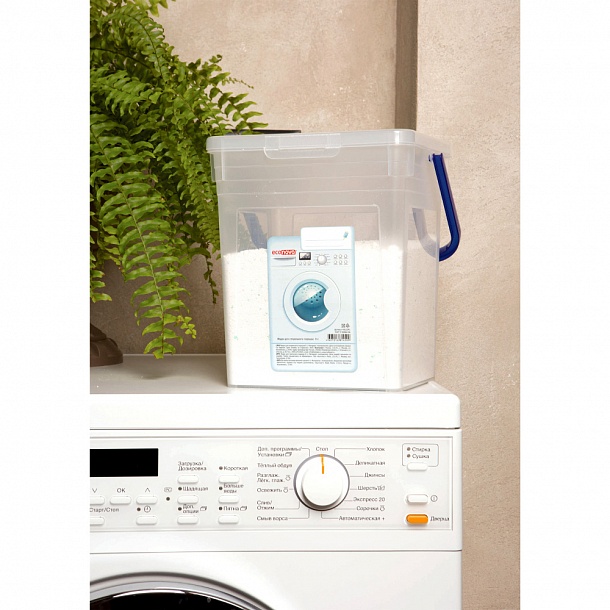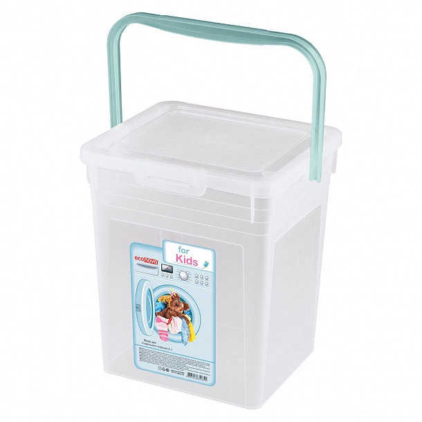 Ведро для хранения детского стирального порошка — отличная альтернатива открытым пакетам и коробкам, которые могут промокнуть. Не занимает много места. Крышка надежно фиксируется защелкой. Благодаря прозрачным стенкам видно, сколько порошка осталось в ведре. Корпус оборудован удобной ручкой.